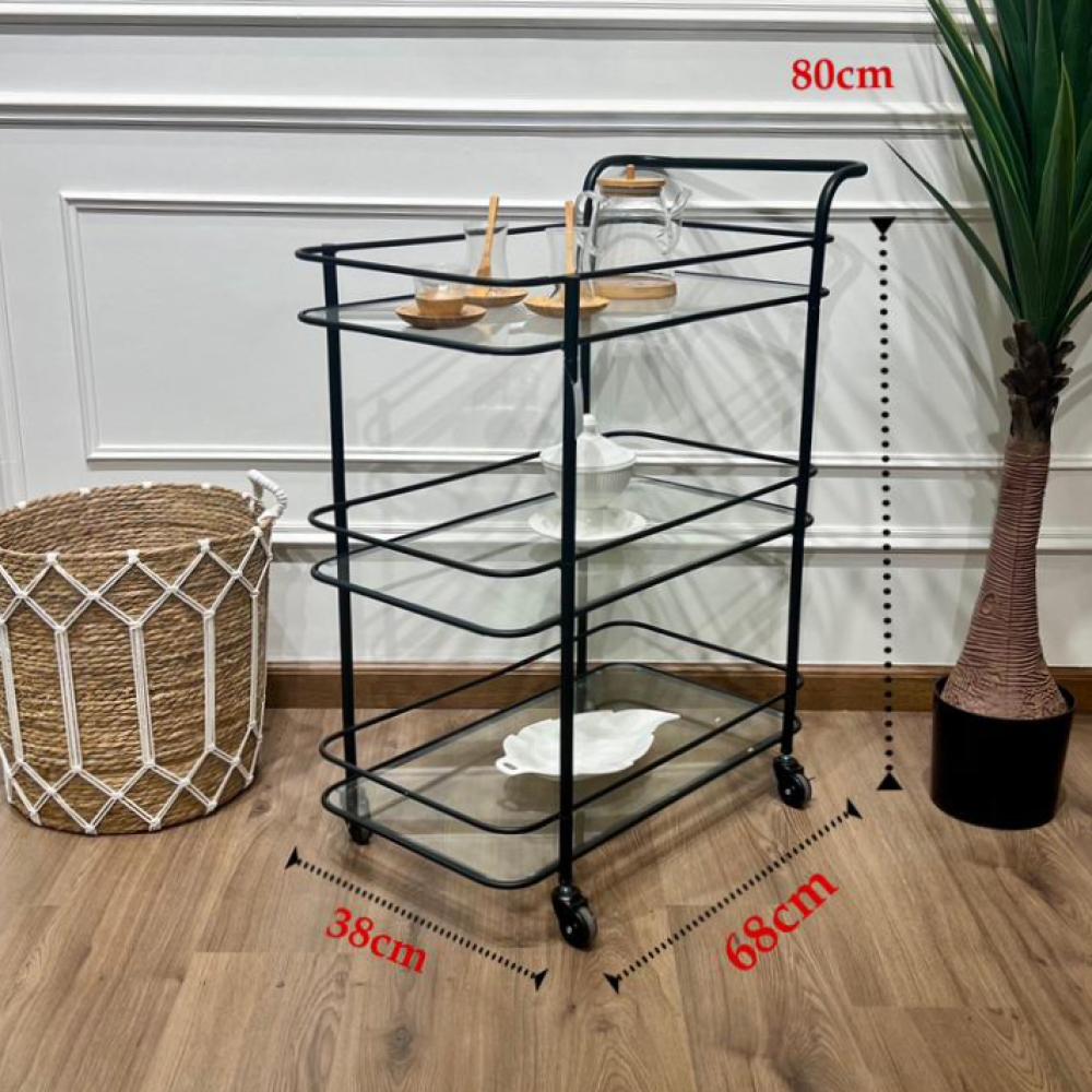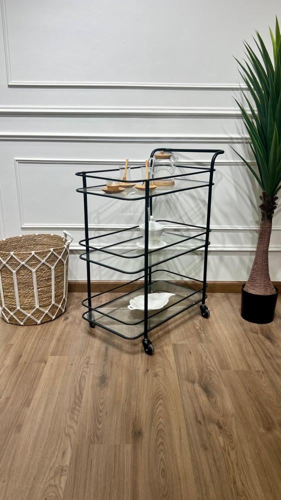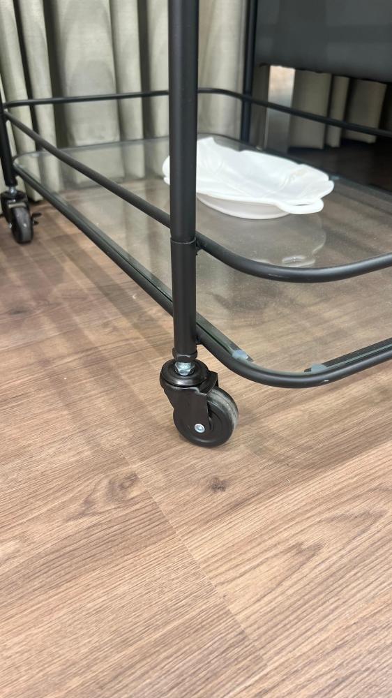 عربة أنيقة وعملية مصممة لتقديم الضيافة أو لتنظيم الأدوات المنزلية. تتميز بهيكل معدني متين ورفوف زجاجية شفافة تمنحها مظهرًا عصريًا وجذابًا. مزودة بعجلات دوارة تسهّل تحريكها بسهولة من مكان إلى آخر، مما يجعلها مثالية للاستخدام في المطبخ، غرفة الطعام، أو حتى المكتب.