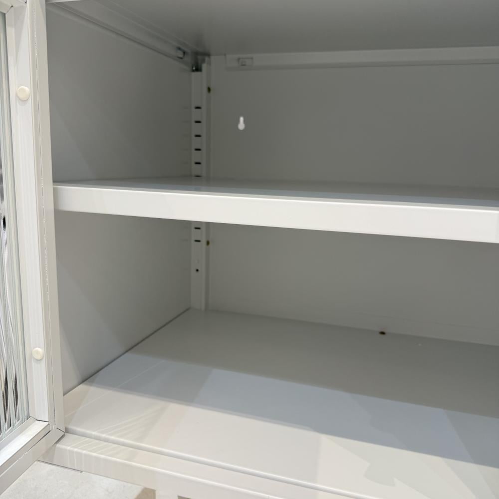 مصنوعة بالكامل من الحديد القوي المقاوم للاستخدام اليومي، وتتميّز بأربعة أبواب زجاجية معتمة تمنحك خصوصية وتحافظ على مظهر أنيق ومتناسق.