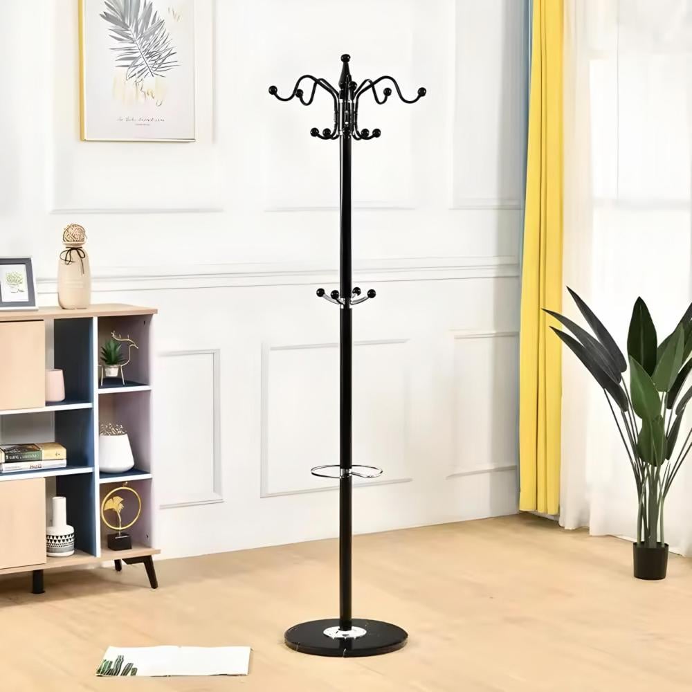 رتّب ملابسك بلمسة من الفخامة مع علاقة المعاطف هذه، المصممة بشكل عمودي أنيق ومتين لتناسب مداخل المنازل، غرف النوم أو المجالس. تجمع بين المتانة والرقي بفضل قاعدتها الرخامية الثقيلة وتصميمها المعدني متعدد الأذرع.
