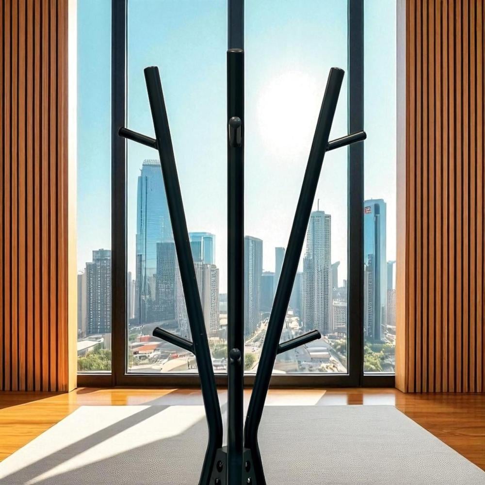 علاقة ملابس أنيقة وعملية بتصميم عصري على شكل مثلثي، مثالية لترتيب المعاطف، الحقائب، والقبعات في مداخل المنازل أو غرف النوم.